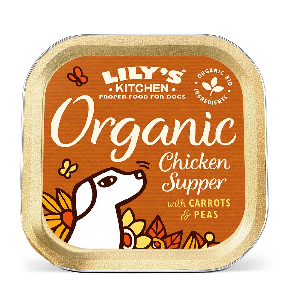 Ekologiskt hundfoder helt fritt från artificiella ingredienser – ett helfoder för vuxna hundar med ekologiskt kyckling, från Lily´s Kitchen!