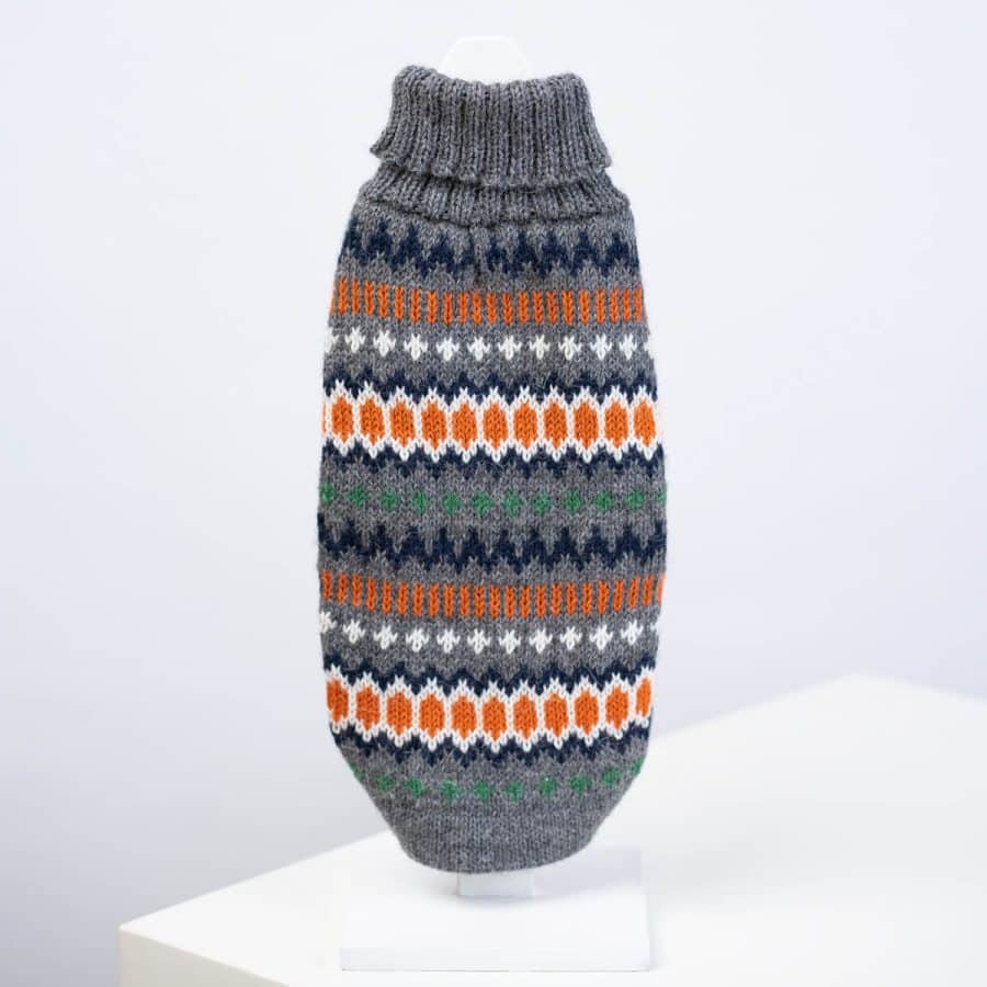 Grey Hexagon från Alqo Wasi är en handvävd peruansk hundtröja av finaste alpackafiberblandning.