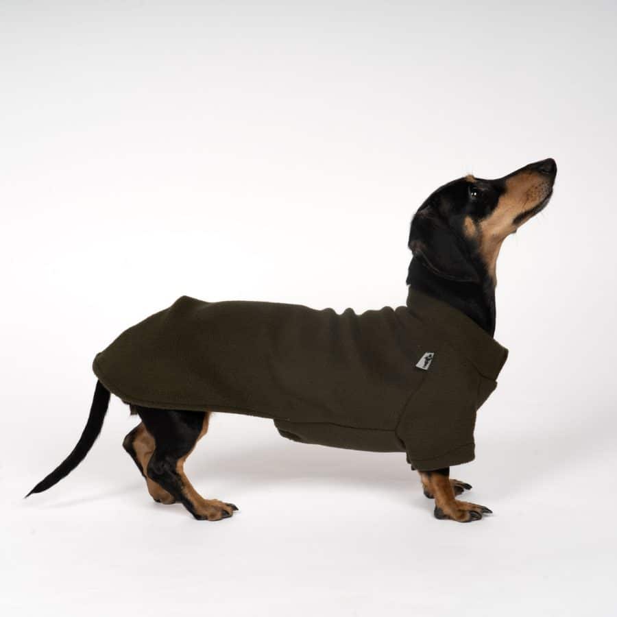Nu kan du hålla din frusna tax varm och skön. Tröjan är mjuk och ger din hund bra rörelsefrihet. Modellen är speciellt utformad för taxars lite speciella kroppsform. Men passar ofta bra även till andra lite långsmala hundar som tex Bichon.