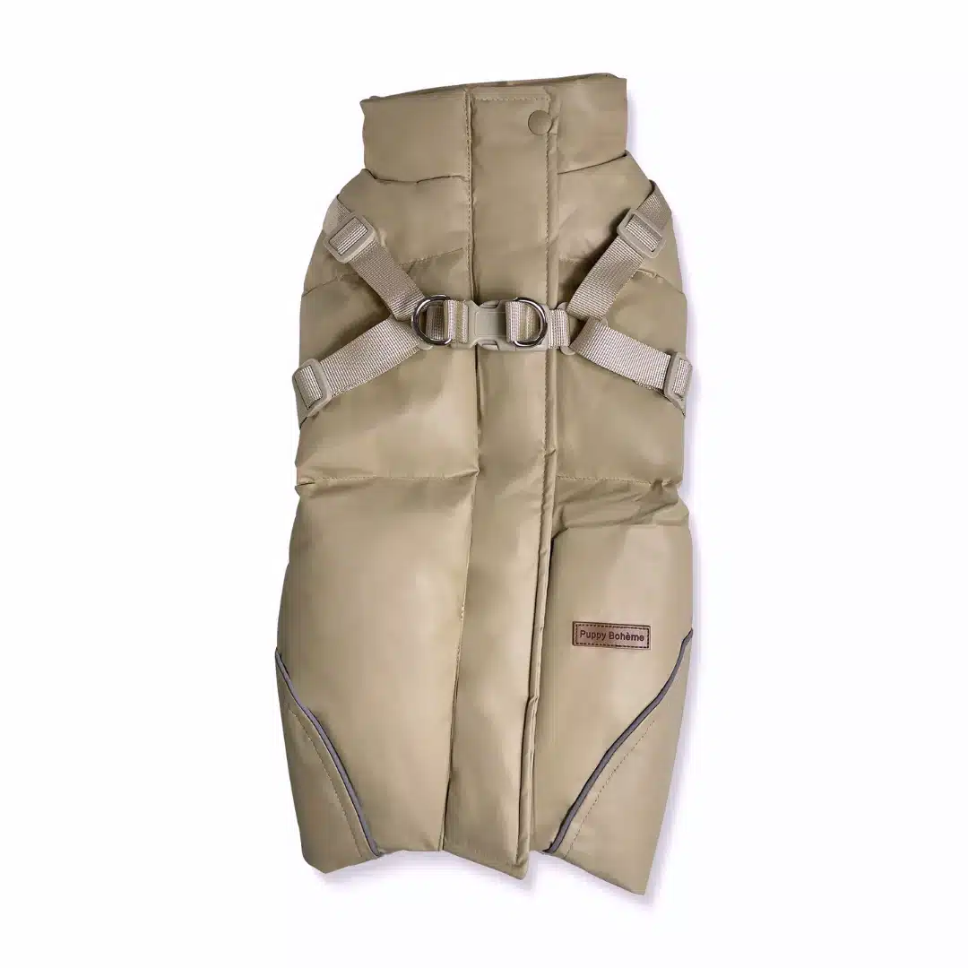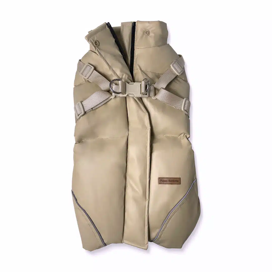 Snygg och praktisk vinterjacka från Puppy Bohème i ”step-in”-modell. Tack vare dragkedjan på ryggen och inbyggd sele behöver du inte klä på din hund i flera lager inför promenaden i det kalla vädret. Selen är justerbar och kan dras åt eller lossas för att uppnå perfekt passform för just din hund.