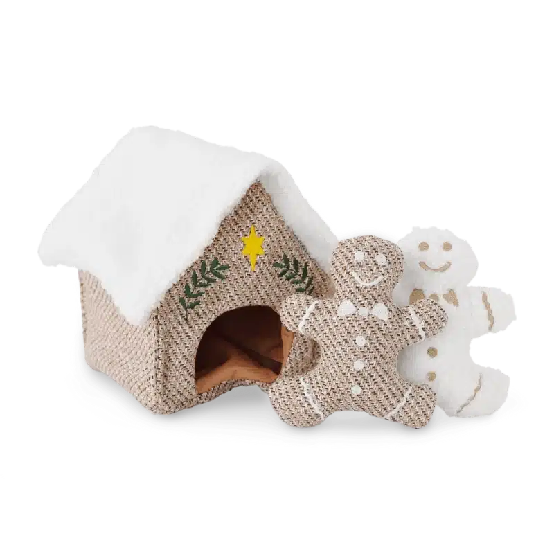 Superfint litet pepparkakshus där två pepparkaksfigurer bor. Göm figurerna i huset och låt din hund leta fram dom. Gör det ännu roligare genom att stoppa in lite godisbitar i huset.
