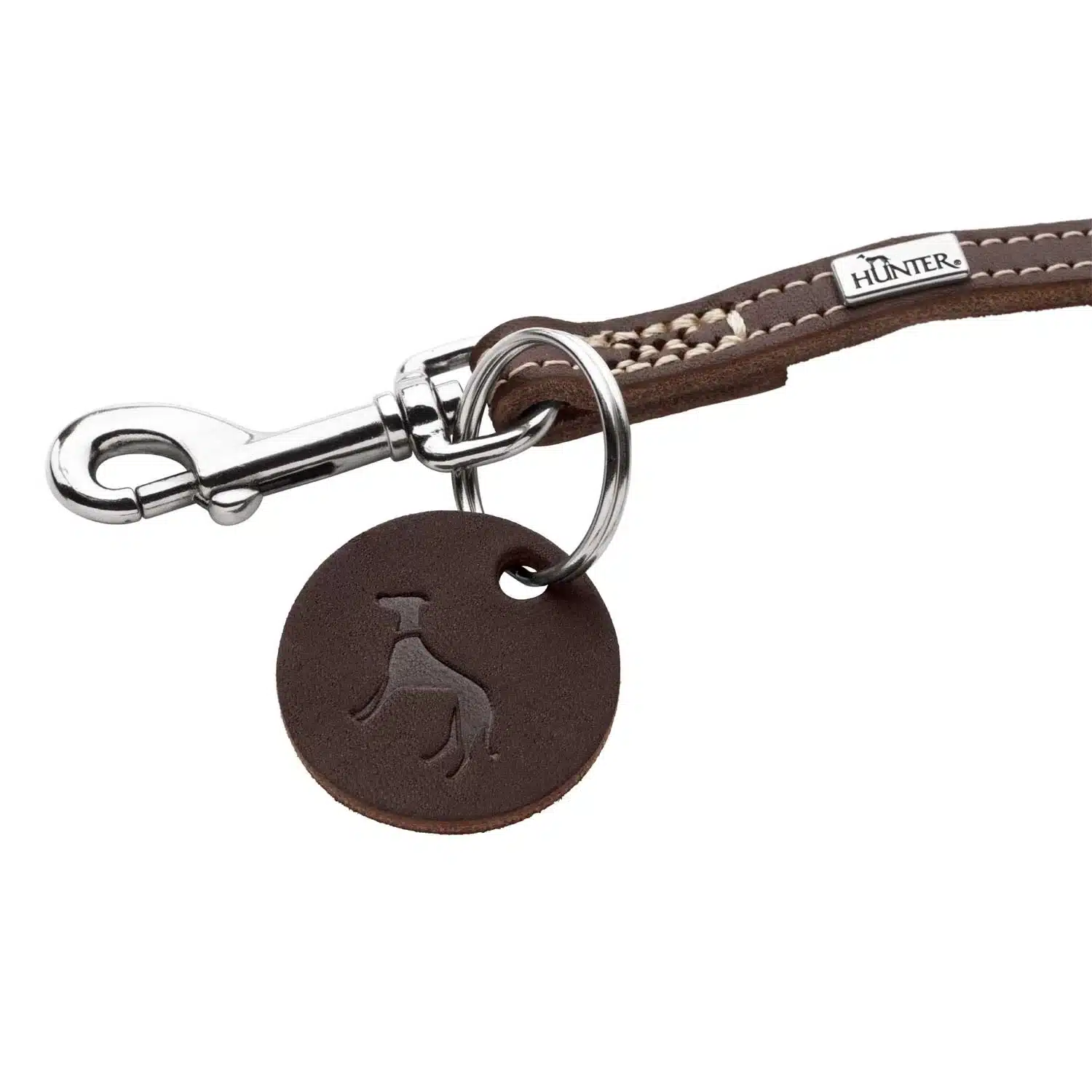 Det mjuka lädret ligger behagligt i handen och erbjuder en optimal kombination av stabilitet och flexibilitet. En liten och lätt karbinhake säkerställer en trygg fastsättning i halsband eller sele utan att tillföra onödig vikt för hunden.
