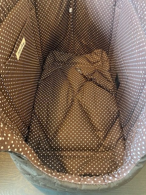 Insidan består av 100% bomull som är mjukt, slitstarkt och andas. Den mjuka invändiga kudden kan plockas ur och tvättas vid behov. Väskan kan bäras öppen eller förslutas tack vare en slitstark YKK-dragkedja.